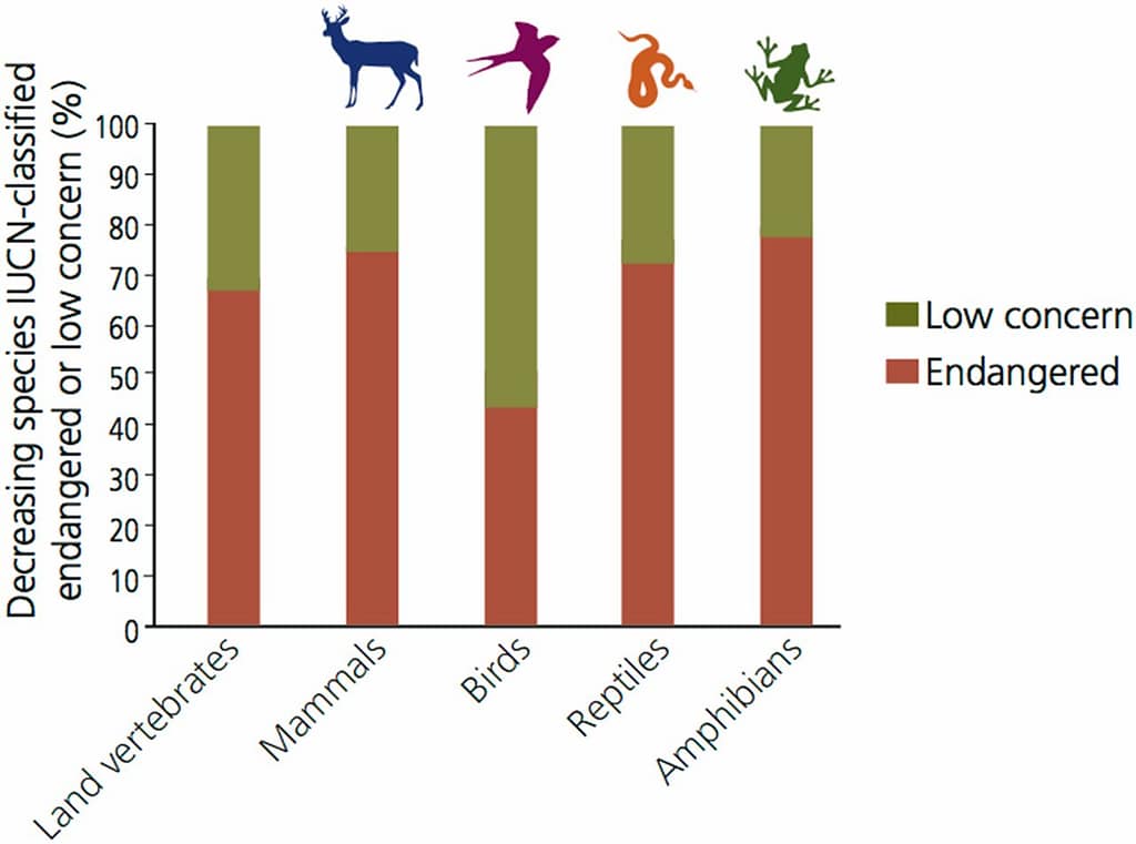 “The ongoing sixth mass species extinction is the result of the destruction of component populations leading to eventual extirpation of entire species. Populations and species extinctions have severe implications for [human] society through the degradation of ecosystem services. Here we assess the extinction crisis from a different perspective. We examine 29,400 species of terrestrial vertebrates, and determine which are on the brink of extinction because they have fewer than 1,000 individuals. There are 515 species on the brink (1.7% of the evaluated vertebrates). Around 94% of the populations of 77 mammal and bird species on the brink have been lost in the last century. Assuming all species on the brink have similar trends, more than 237,000 populations of those species have vanished since 1900. We conclude the human-caused sixth mass extinction is likely accelerating for several reasons. First, many of the species that have been driven to the brink will likely become extinct soon. Second, the distribution of those species highly coincides with hundreds of other endangered species, surviving in regions with high human impacts, suggesting ongoing regional biodiversity collapses. Third, close ecological interactions of species on the brink tend to move other species toward annihilation when they disappear—extinction breeds extinctions. Finally, human pressures on the biosphere are growing rapidly, and a recent example is the current coronavirus disease 2019 (Covid-19) pandemic, linked to wildlife trade. Our results reemphasize the extreme urgency of taking much-expanded worldwide actions to save wild species and humanity’s crucial life-support systems from this existential threat.