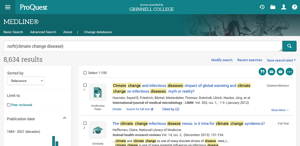 At the very least, algorithms lead to differences in the information you see. For example, the same search of the Medline database through ProQuest (a for-profit corporation) and the National Library of Medicine (a U.S. government agency) results in this: